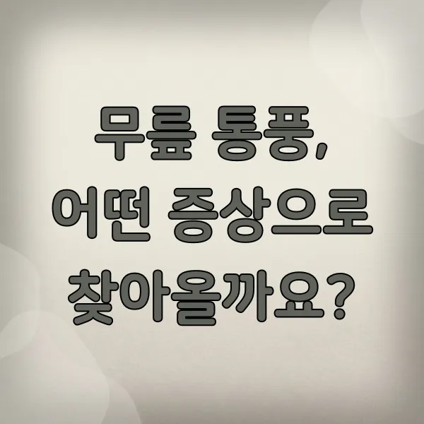 안녕하세요! 오늘은 많은 분들이 궁금해하시는 '무릎 통풍' 증상에 대해 이야기해 볼까 해요. 갑자기 무릎이 욱신거리고 걷기조차 힘들 정도로 아프다면, 혹시 통풍은 아닐까 걱정되실 텐데요.