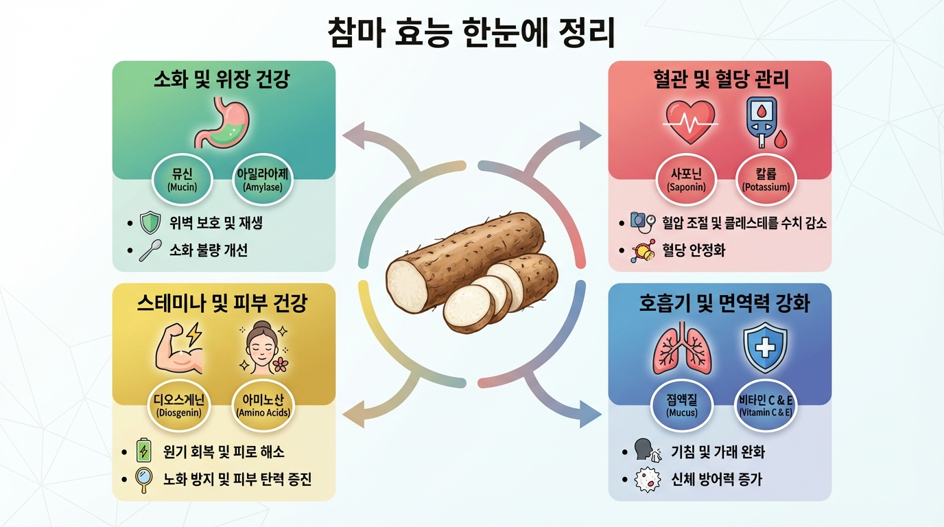 참마는 뮤신이라는 특별한 성분이 들어있어서 위장 건강에 정말 좋아요. 소화도 잘되고 피로도 풀려서 저도 자주 챙겨 먹는데, 오늘은 참마의 놀라운 효능들을 자세히 설명해드릴게요. 혈당 관리부터 피부 미용까지 한 번에 챙길 수 있는 음식이랍니다.