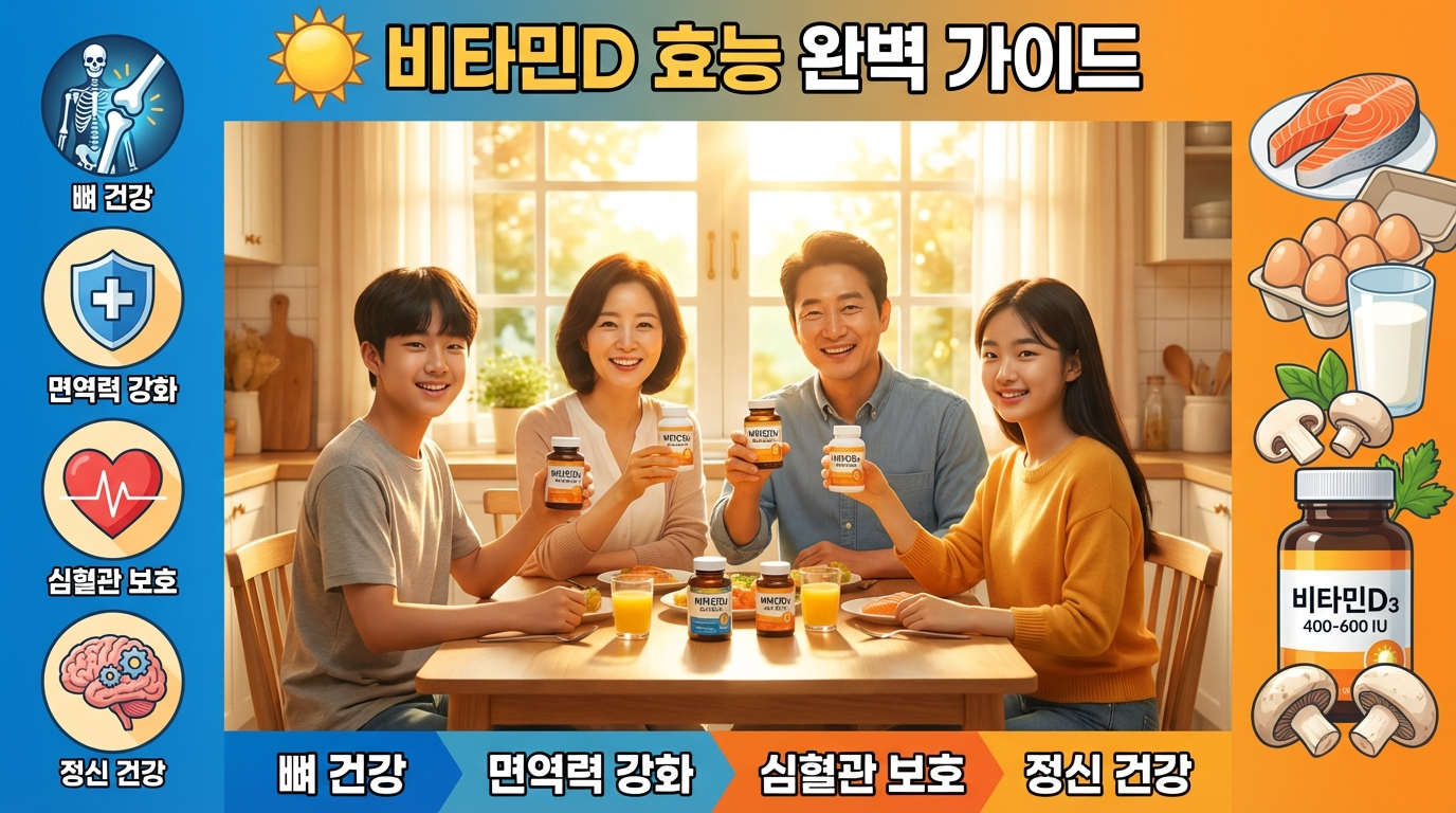 비타민D는 단순한 뼈 건강 영양제를 넘어 우리 몸의 면역 체계, 심혈관 건강, 심지어 정신 건강까지 영향을 미치는 필수 영양소예요. 특히 해 거의 안 보고 집에만 있는 요즘 같은 시대에 비타민D 결핍은 정말 흔한데, 알아두면 건강 관리가 한층 수월해진답니다. 이 글에서는 비타민D가 우리 몸에서 하는 구체적인 역할과 효능, 그리고 제대로 섭취하는 방법까지 정리해드릴게요.