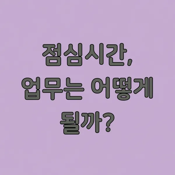 음, 이게 좀 복잡해요. 모든 직원이 동시에 식사를 하는 건 아니고, 교대 근무 를 하는 곳이 많거든요. 그래서 점심시간이라고 해서 완전히 업무가 중단되는 건 아니에요. 창구가 일부 닫힐 수는 있지만, 간단한 업무 처리는 가능한 경우가 대부분입니다. 그래도 혹시 모르니, 꼭 처리해야 할 중요한 업무가 있다면 오전에 미리 가거나 점심시간이 끝난 오후 1시 이후에 방문하는 게 마음 편할 거예요.