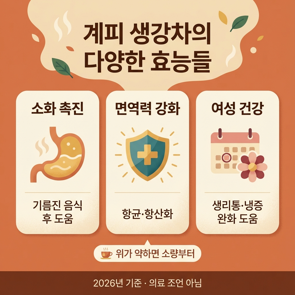 저도 작년 겨울에 꾸준히 이 차를 마셨을 때 감기를 한 번도 안 걸렸어요. 회사에서 감기가 돌 때도 저는 멀쩡했거든요. 2026년의 최신 연구들도 계피 생강차가 면역 세포를 활성화시킨다고 보고하고 있어요.